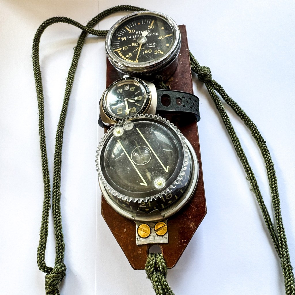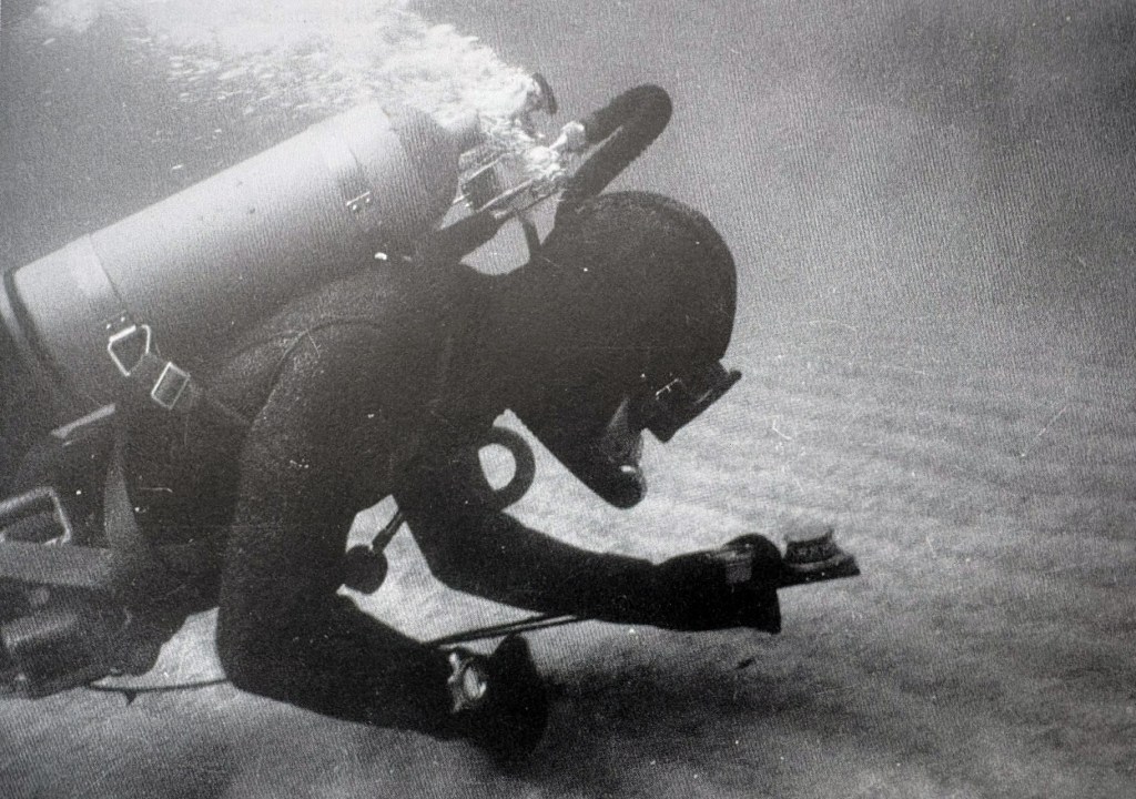 Dabei wurde das Brett vor den Körper gehalten um die Instrumente zur Orientierung immer im Blick zu behalten (siehe Bilder, rechts das originale „Navigationsbrett“ von Kampfschwimmer Thomas König).