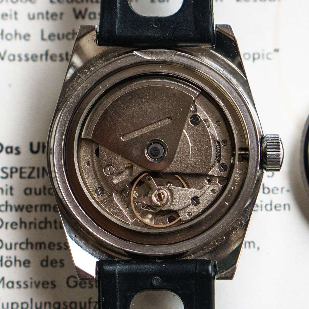 Auch die Gehäuse der zweiten Generation der Spezimatic Taucheruhren wurden von der Firma Richard Pfisterer aus der BRD importiert. Interessanterweise sind die Uhren nur noch mit 5ATM, also 50m Tauchtiefe ausgewiesen. In der Regel spricht man hierbei nicht mehr von einer Taucheruhr. Trotzdem wurden diese Uhren an das KSK18 ausgegeben. Entweder waren die 50m für den Einsatzzweck ausreichend (TDV gibt maximale Tauchtiefe von 60m vor), oder man wusste das die Gehäuse eine hohe Reserve haben.