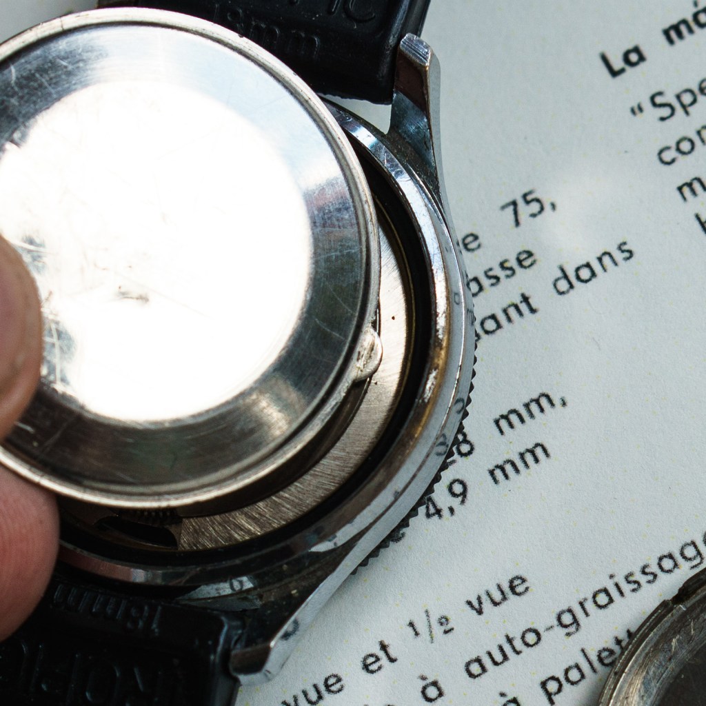 Eine Besonderheit der Vorserien-Taucheruhr ist der integrierte Staubdeckel hinter dem eigentlichen Schhraubdeckel. Ob er nur dem Sauberhalten des Werkes diente oder der Dichtheit der Uhr zuträglich war ist bisher nicht bekannt. Im Vergleich zu anderen bekannten Staubdeckeln hat dieser eine kleine Aussparung, die auch nur an einer Position im Gehäuse passt (gegenüber der Krone).