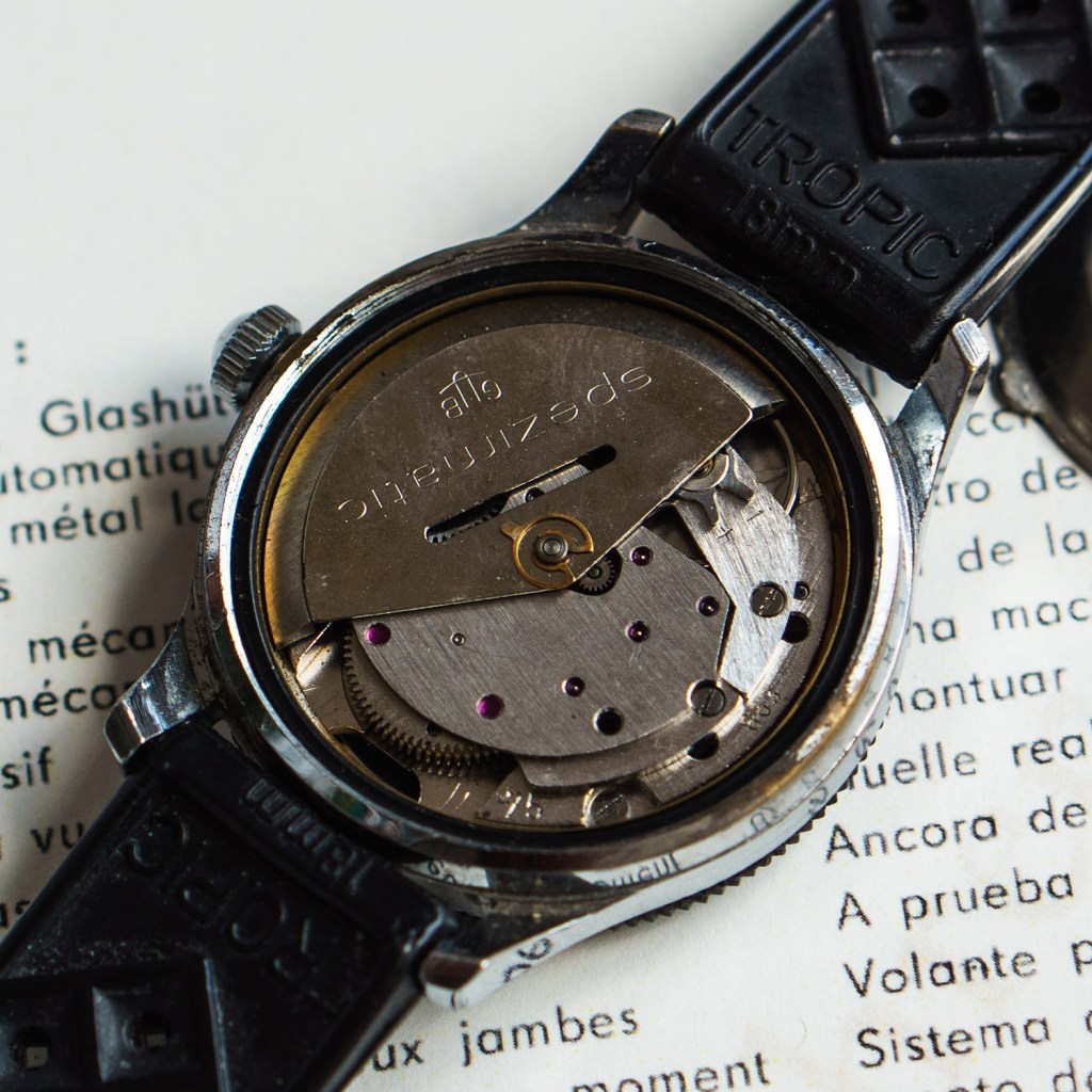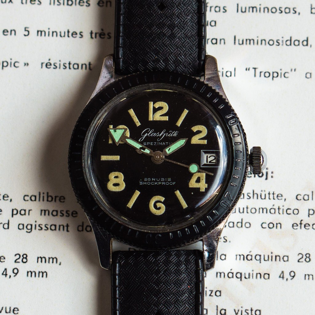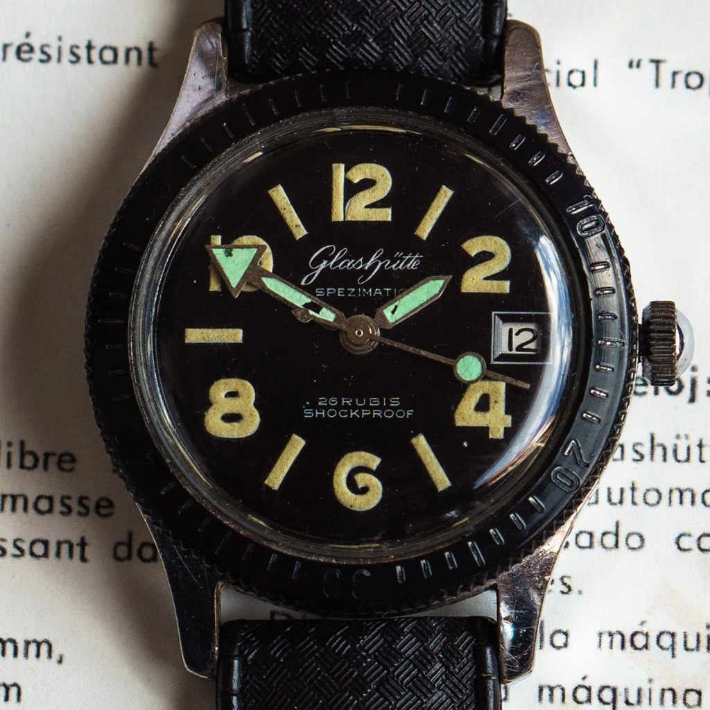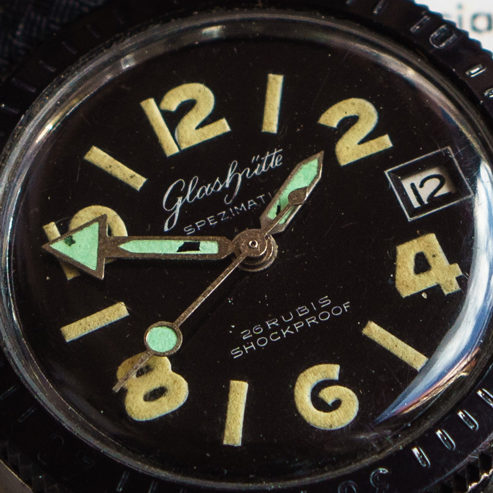 Das Gehäuse hat den Taucher-Alltag in Bezug auf Dichtheit leider nicht meistern können, alle 100 Vorserien Uhren gingen Undicht und teilweise verrosteten Werken zurück nach Glashütte.